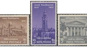 India 1957 Centenary of Indian Univerities (Bombay – Calcutta – Madras) – Set of 3 Postage Stamps MNH