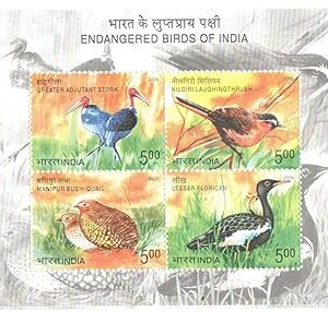 India 2006 Endangered Birds of India – Set of 4 Postage Stamps Mint Unhinged
