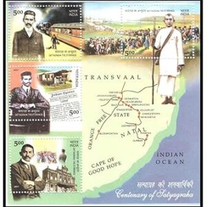 India 1995 India-South Africa Co-Operation Mahatma Gandhi Se-Tenant Block of 8 Postage Stamps Mint Unhinged