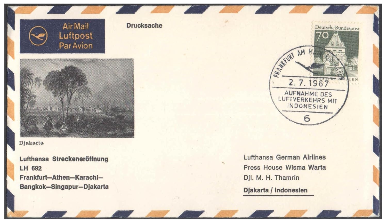 1967 First Flight Cover – (02 July 1967) FRANFURT (Germany) to Jakarta (Indonesia) – for philatelic Stamp, Collection