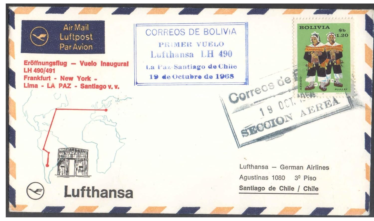 1968 First Flight Cover – (19 October 1968) – Frankfurt (Germany) to Santiago (Chile) – for Stamp, philatelic Collection