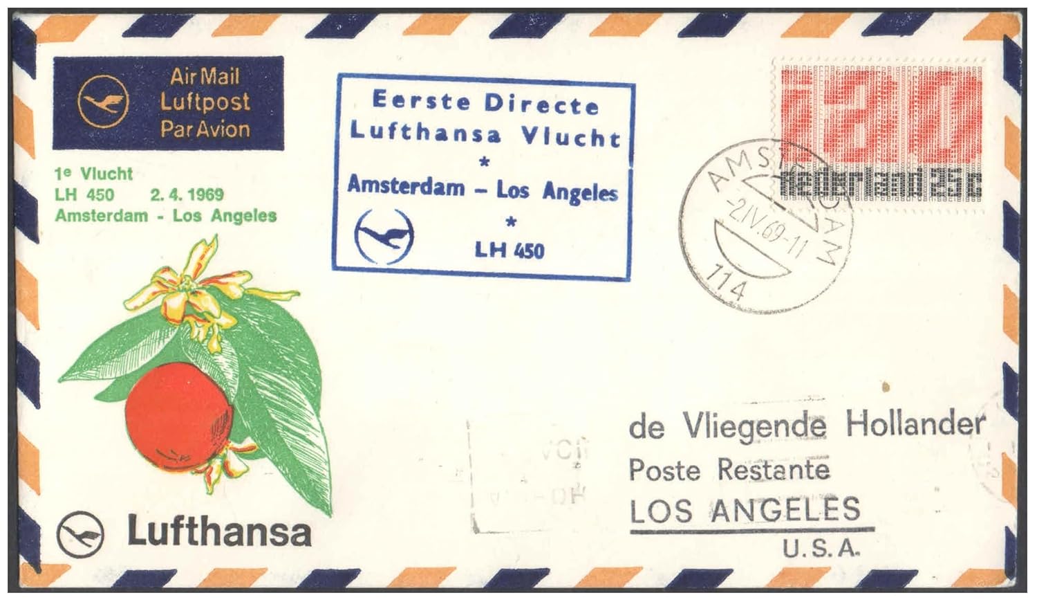 1969 First Flight Cover – (02 April 1969) – Amsterdam (Netherlands) to Los Angeles (USA) – for Stamp, philatelic Collection