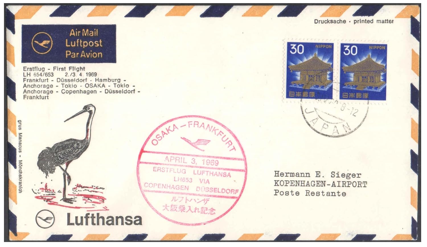 Be the first to review “1969 First Flight Cover – (02 April 1969) – Frankfurt (Germany) to Osaka (Japan) – for Stamp, philatelic Collection (D)”