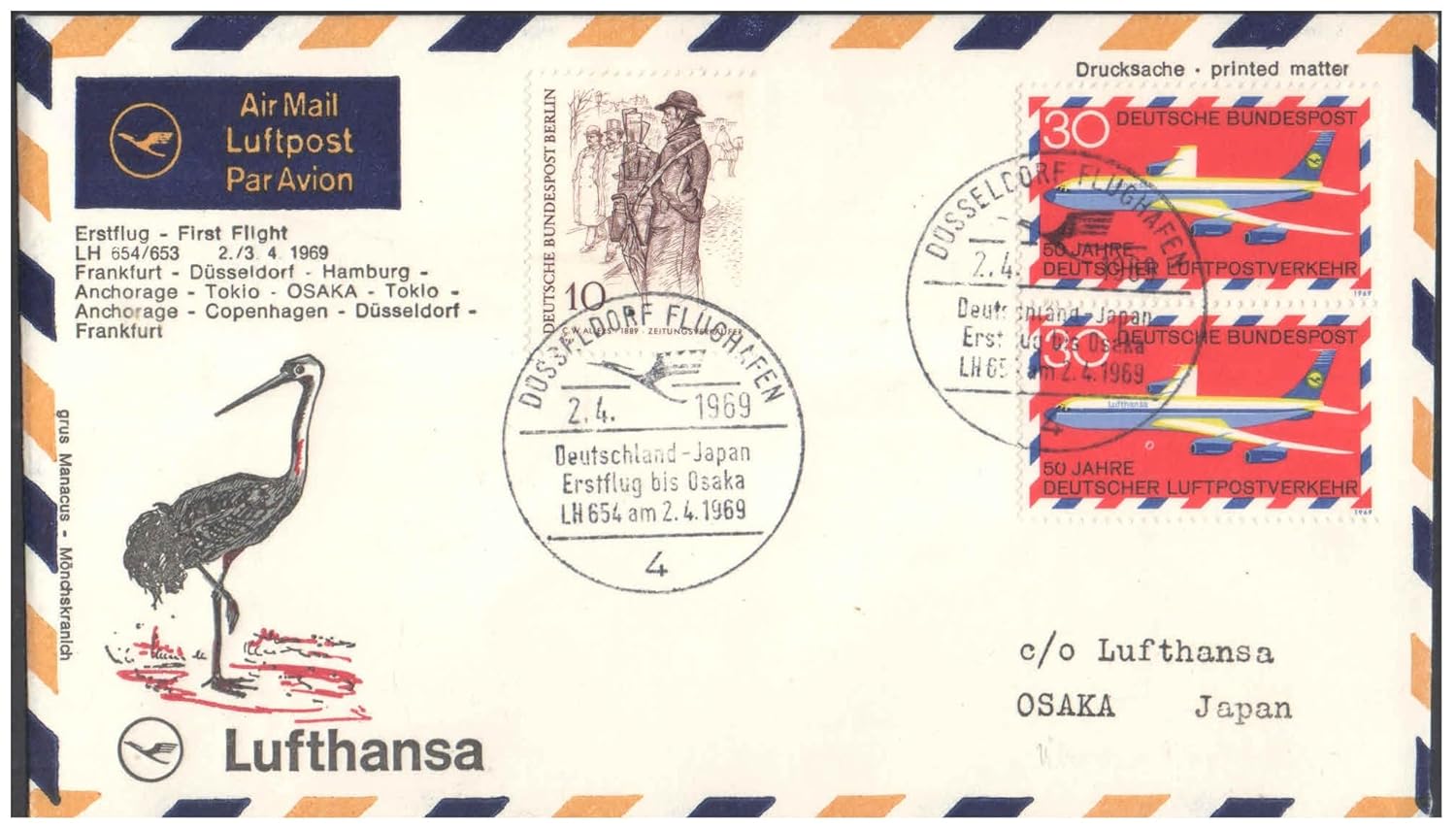 1969 First Flight Cover – (02 April 1969) – Frankfurt (Germany) to Osaka (Japan) – for Stamp, philatelic Collection