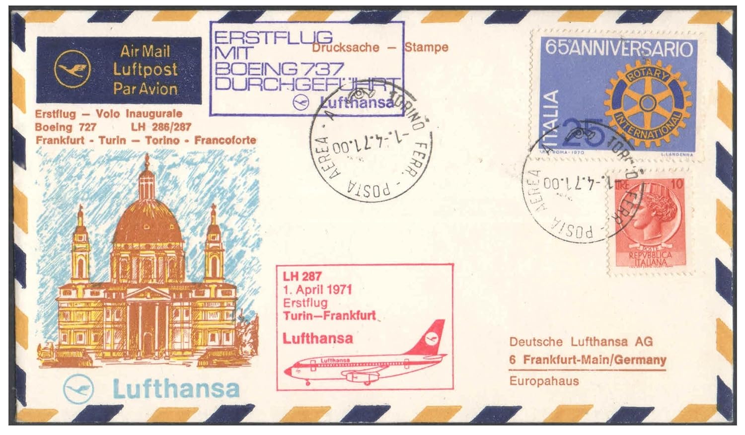1971 First Flight Cover – (01 April 1971) – Frankfurt (Germany) to Turin (Italy) – for Stamp, philatelic Collection