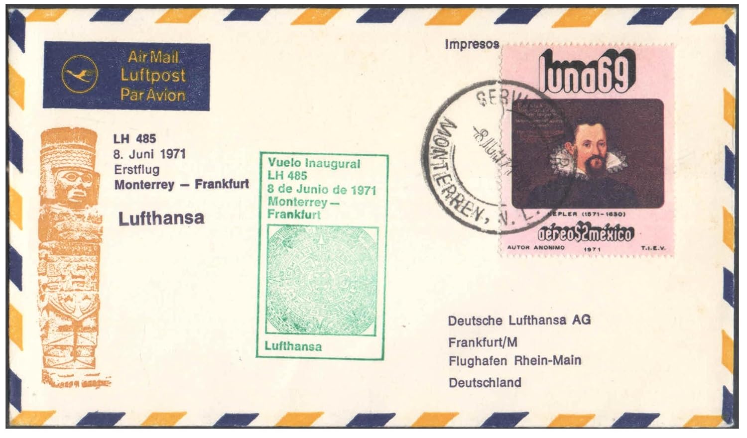 1971 First Flight Cover – (08 June 1971) – Monterrey (Mexico) to Frankfurt (Germany) – for Stamp, philatelic Collection
