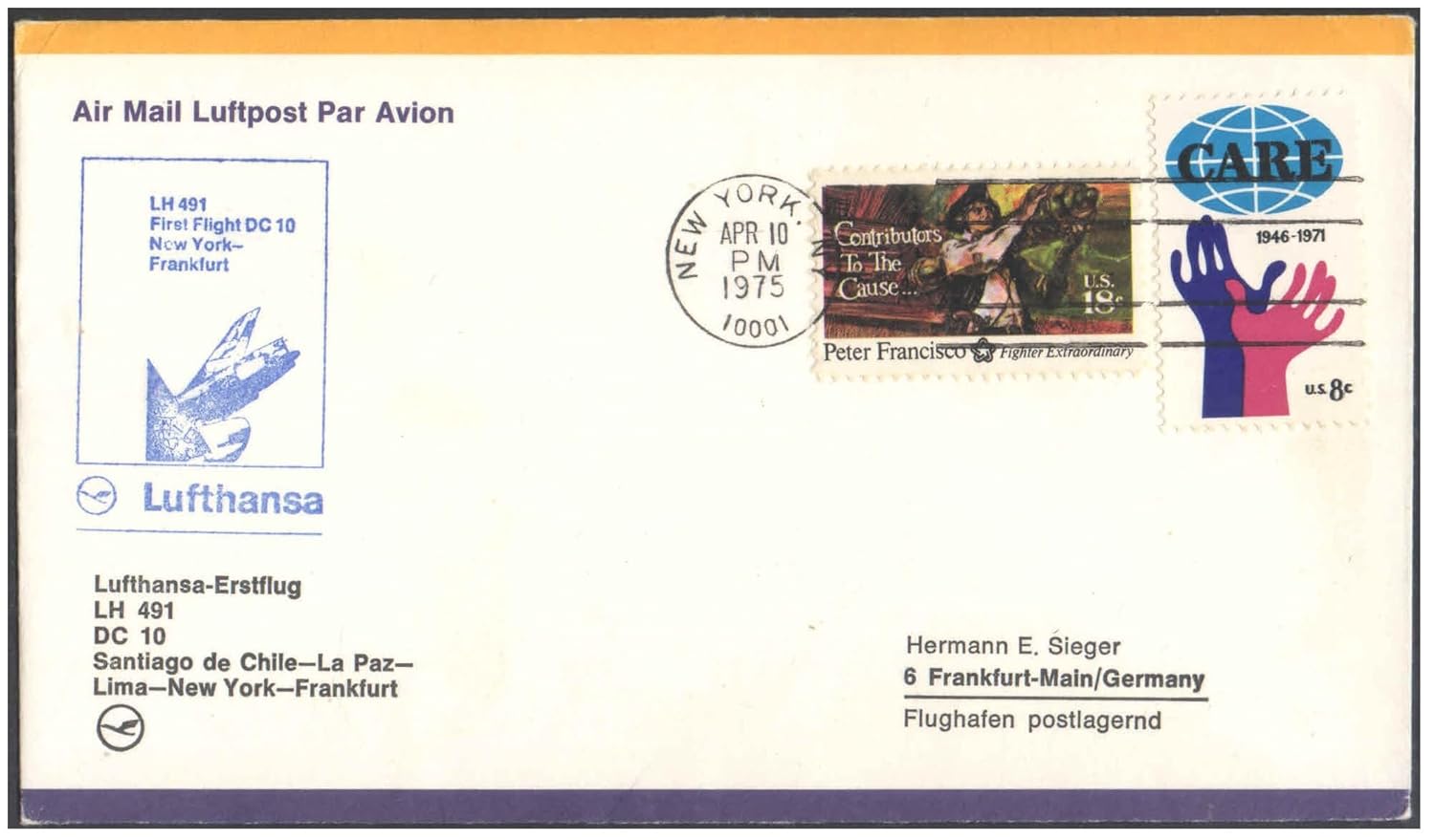 1975 First Flight Cover – (10 April 1975) – Santiago (Chile) to Frankfurt (Germany) – for Stamp, philatelic Collection (B)