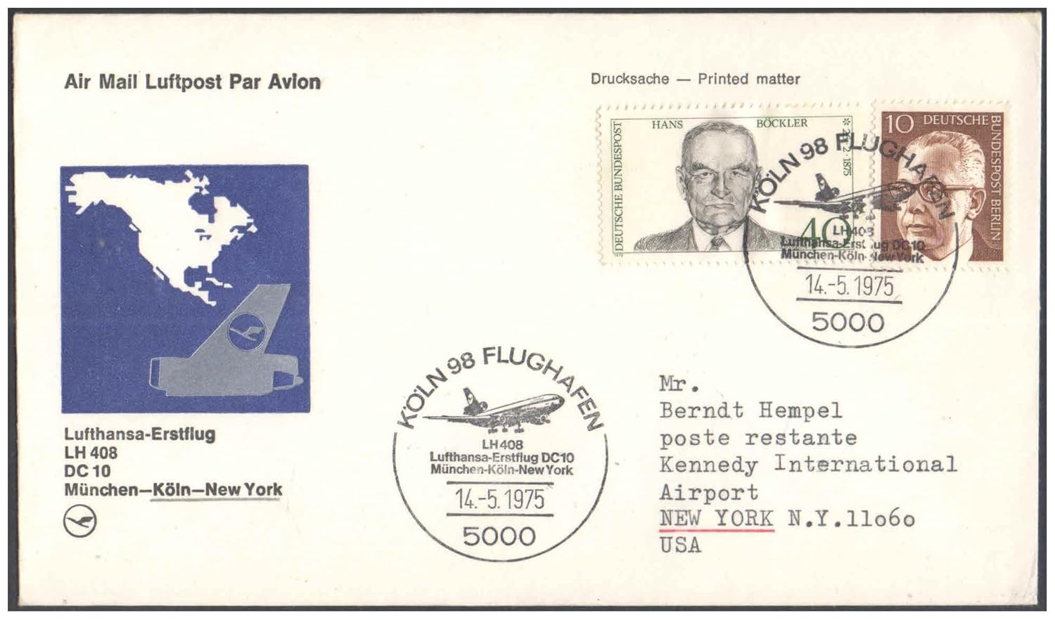 1975 First Flight Cover – (14 May 1975) – Munich (Germany) to NEW YORK (USA) – for Stamp, philatelic Collection