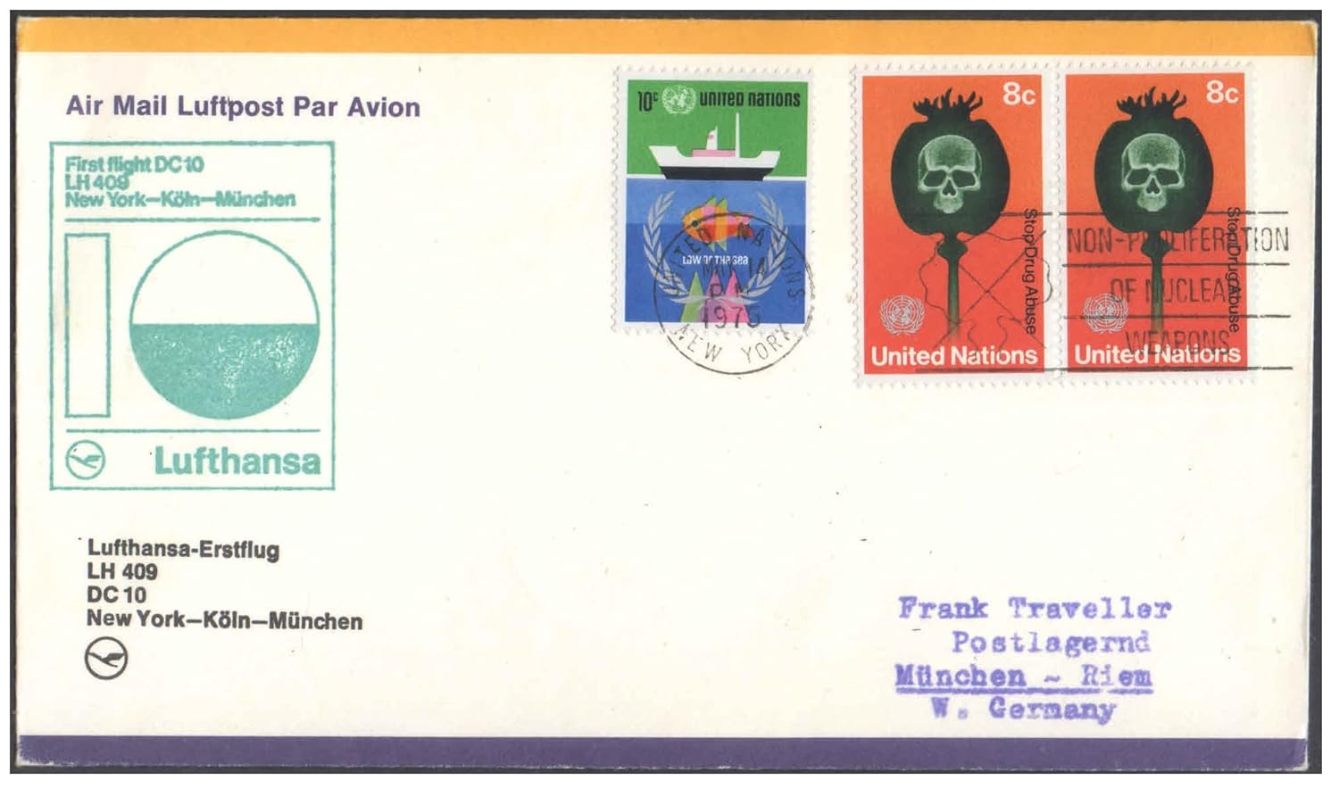 1975 First Flight Cover – (14 May 1975) – NEW YORK (USA) to Munich (Germany) – for Stamp, philatelic Collection