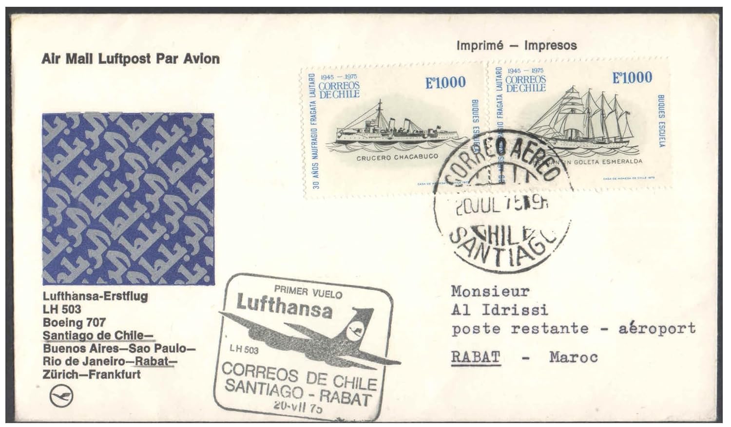 1975 First Flight Cover – (20 July 1975) – Santiago (Chile) to Frankfurt (Germany)- for Stamp, philatelic Collection