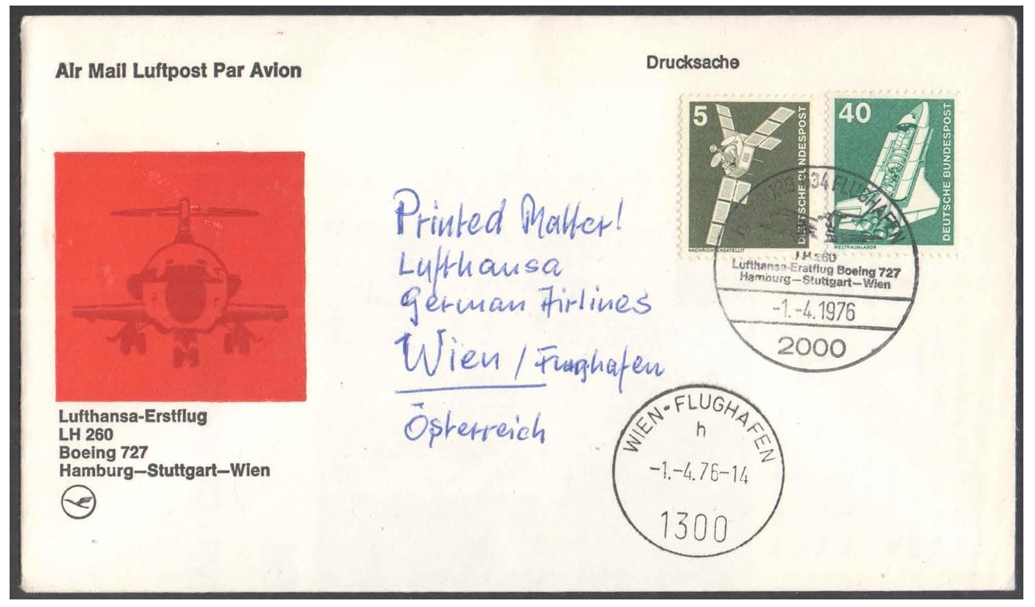 1976 First Flight Cover – (01 April 1976) – Hamburg (Germany) to Vienna (Austria) – for Stamp, philatelic Collection