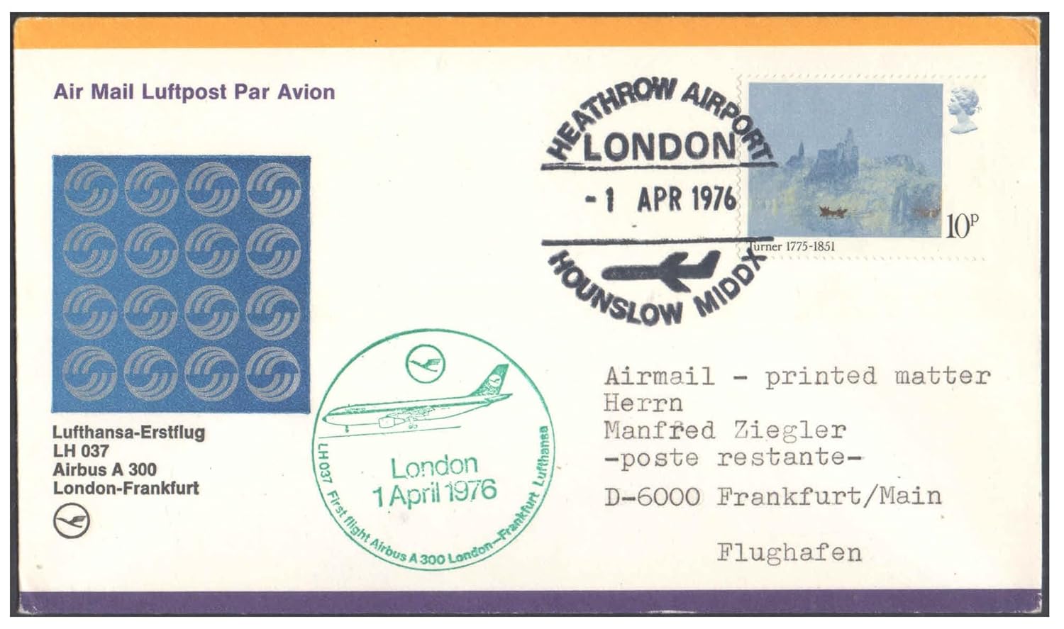 1976 First Flight Cover – (01 April 1976) – London (U.K.) to Frankfurt (Germany) – for Stamp, philatelic Collection
