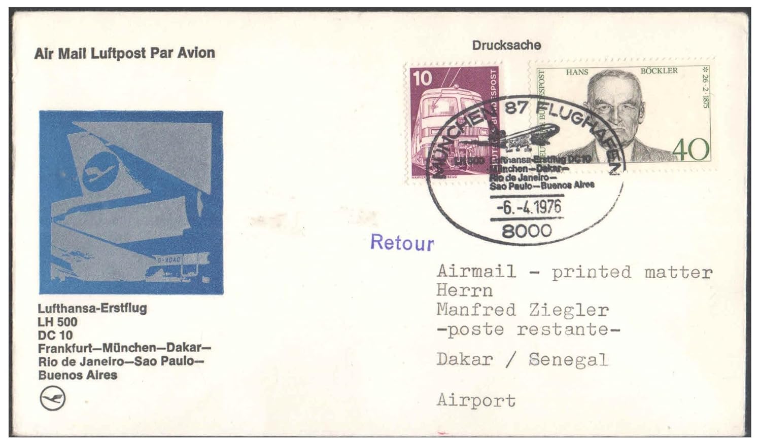 1976 First Flight Cover – (06 April 1976) – Frankfurt (Germany) to Buenos Aires (Argentina) for Stamp, philatelic Collection