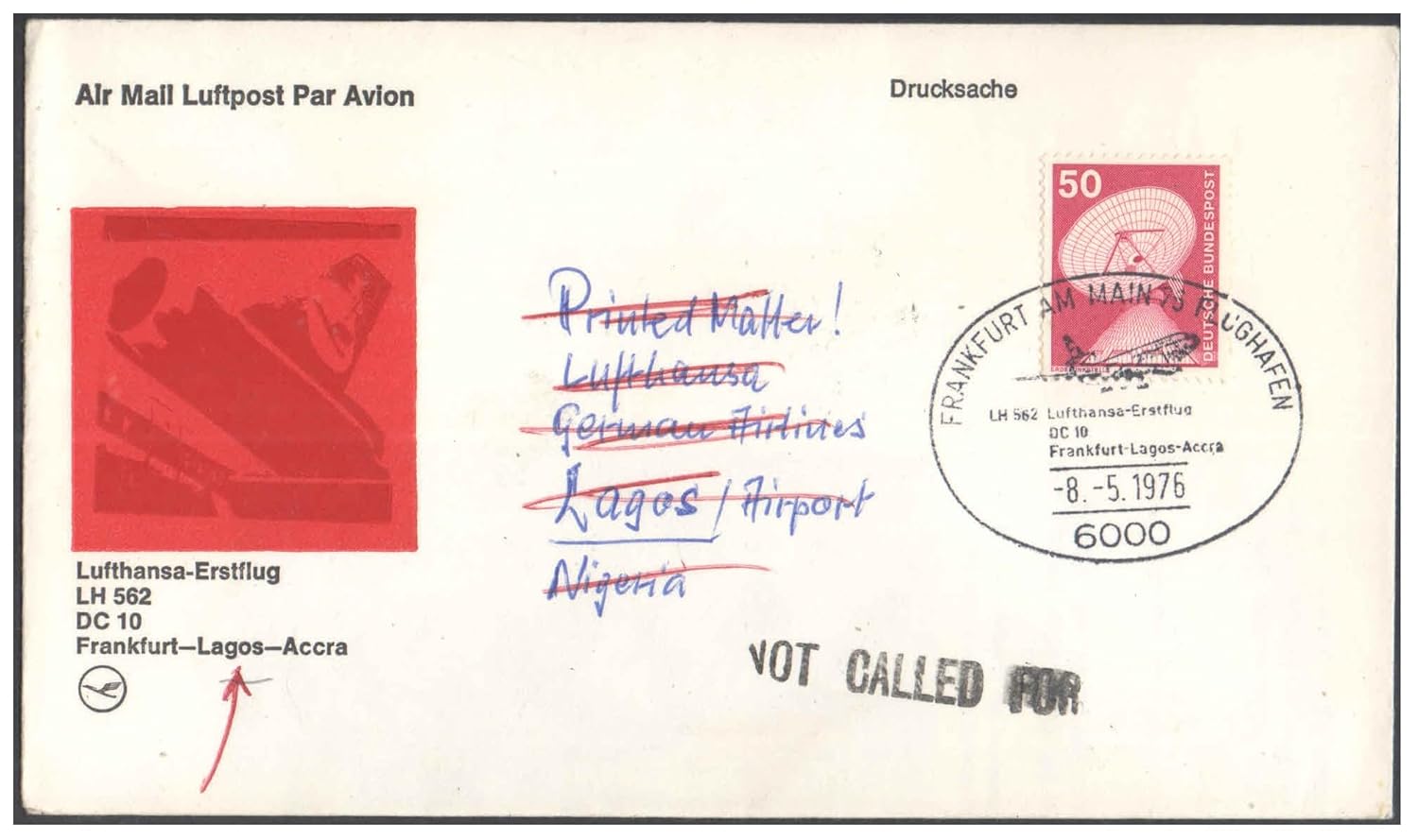 1976 First Flight Cover – (08 May 1976) – Frankfurt (Germany) to Accra (Ghana) – for Stamp, philatelic Collection (C)