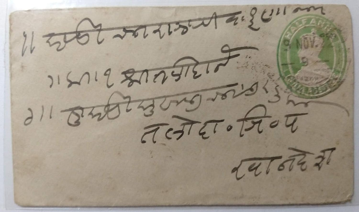 British India 1922 King George V Half Anna (Surcharge Half Anna Stamp on The Back ) Postage Envelope Cover (Small) Posted on 09 November 1922