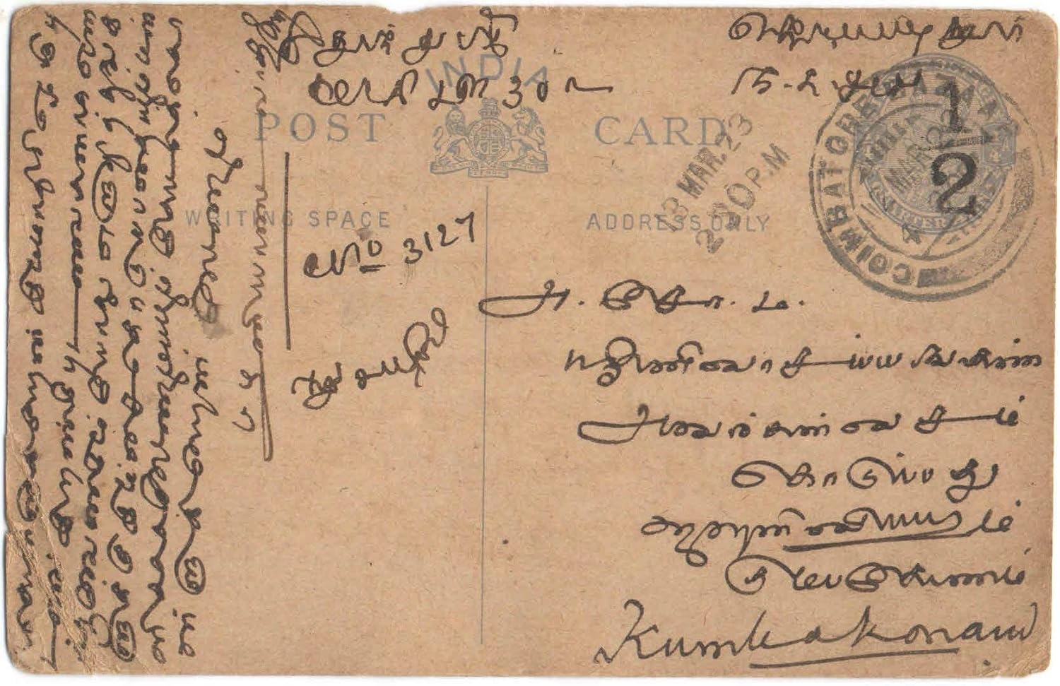 British India 1923 King George V Quarter Anna Overprint Half Anna Post Card Dated 12-03-1923