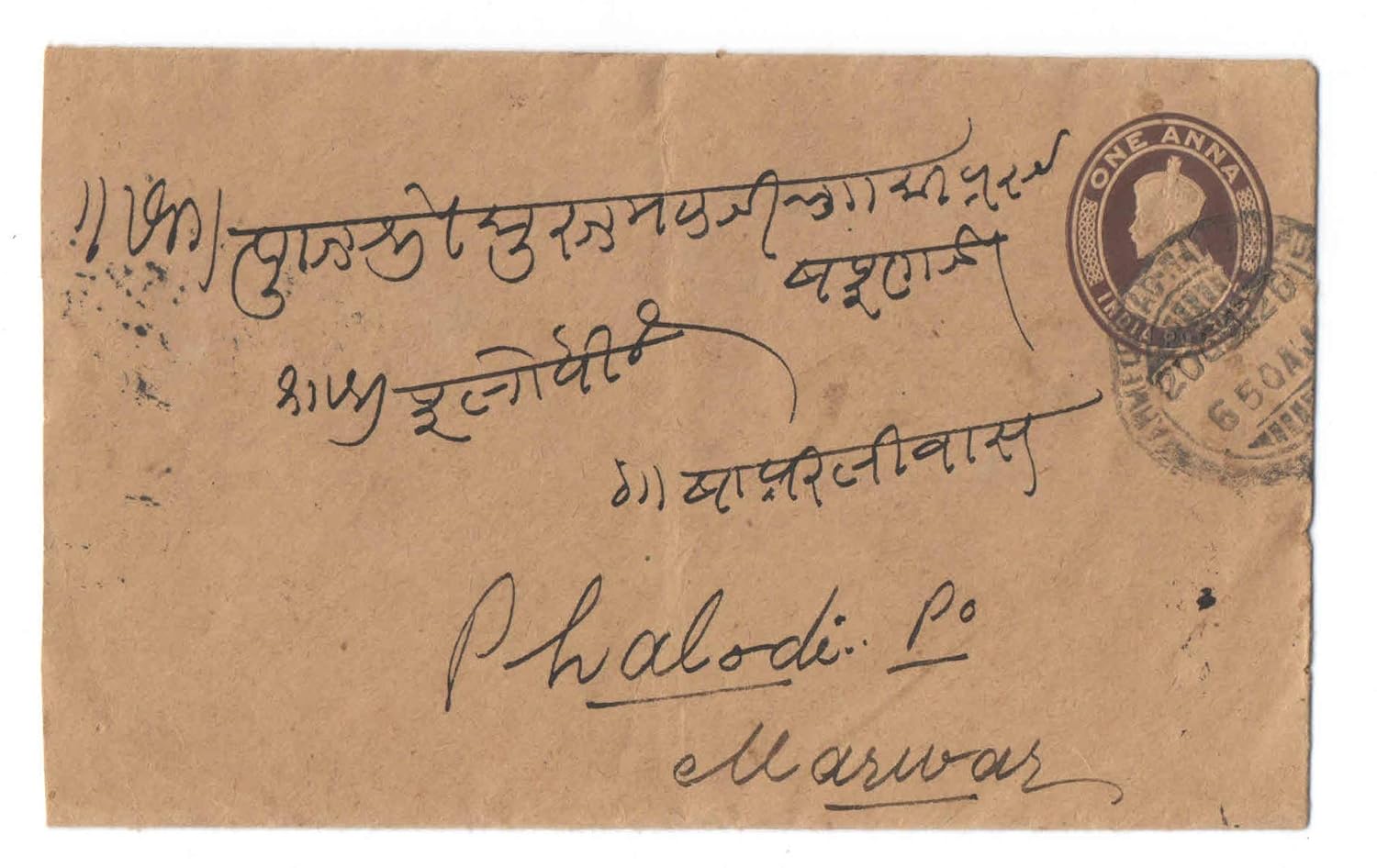 British India 1926 King George V One Anna Envelope Cover Posted on 20 July 1926
