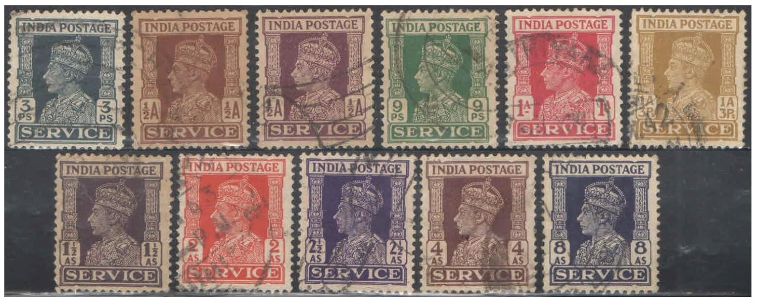 British India 1939 King George VI – Service – Complete Set of 11 Used Stamps for Collection