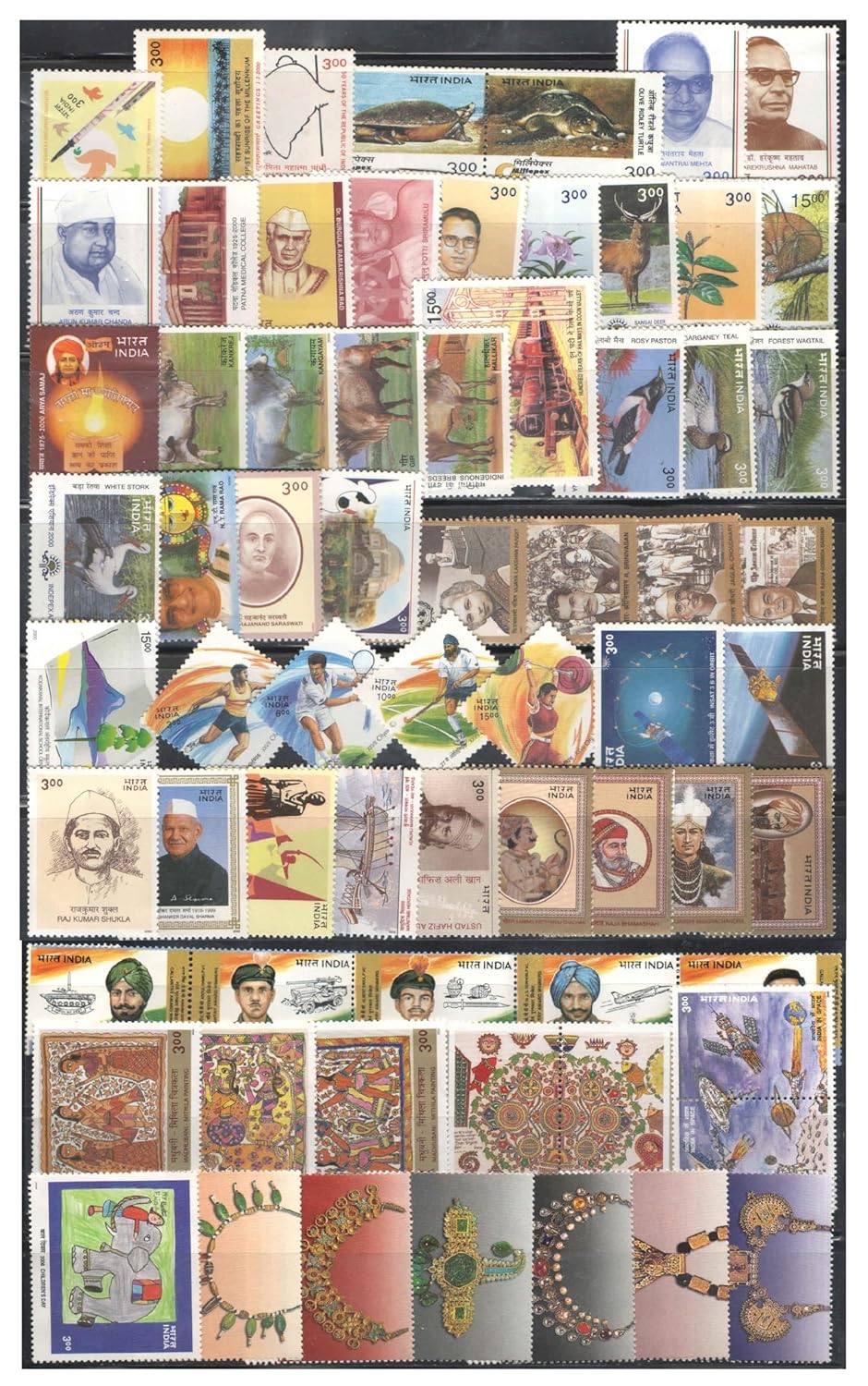 Generic India 2000 Year Pack – 68 Postage Stamps (Including Rajkumar Shukla Stamp) – Mint – Unhinged – Excellent Condition – All Ages