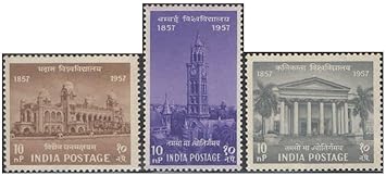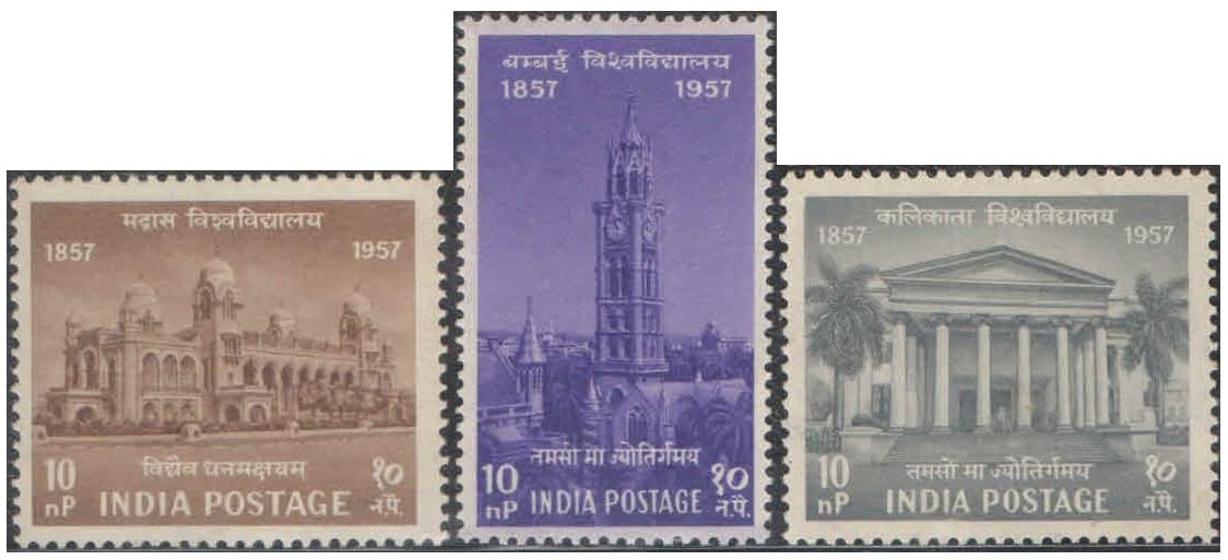 India 1957 Centenary of Indian Univerities (Bombay – Calcutta – Madras) – Set of 3 Postage Stamps MNH