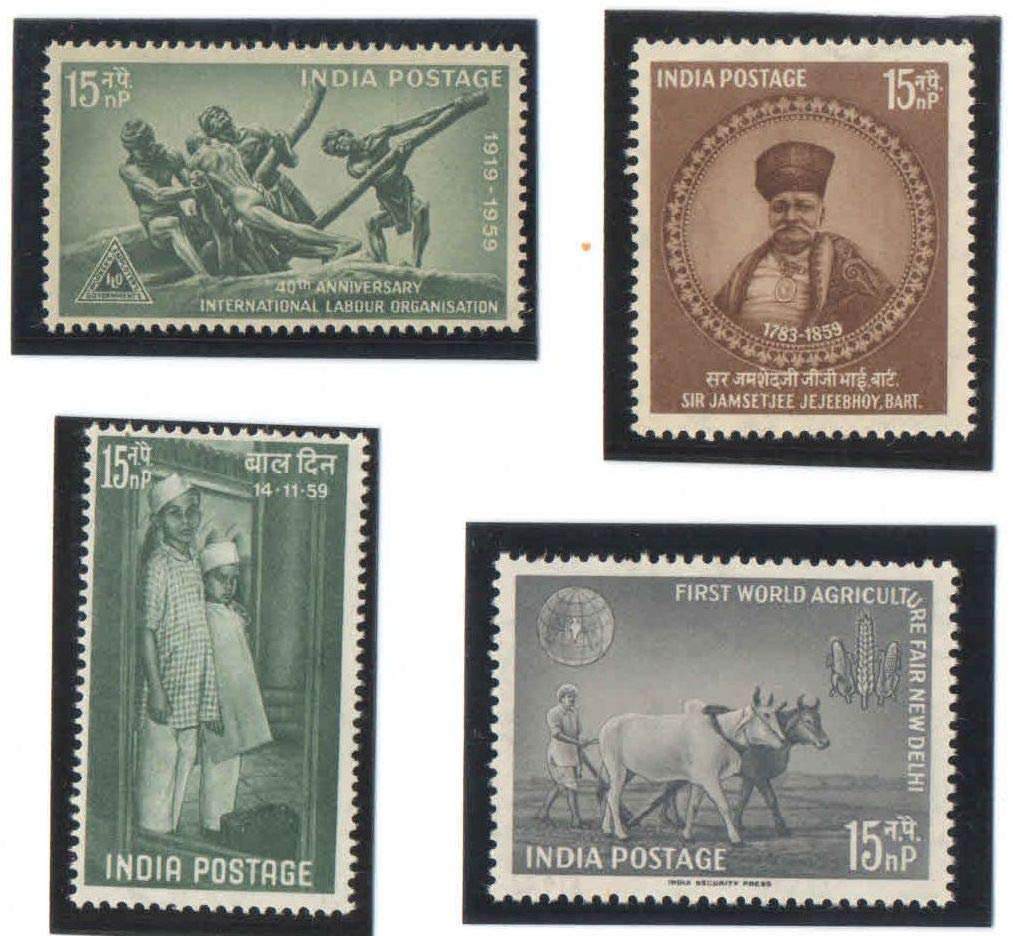 India 1959 Year Pack (Full Complete Set) of 4 postage stamps Mint Unhinged