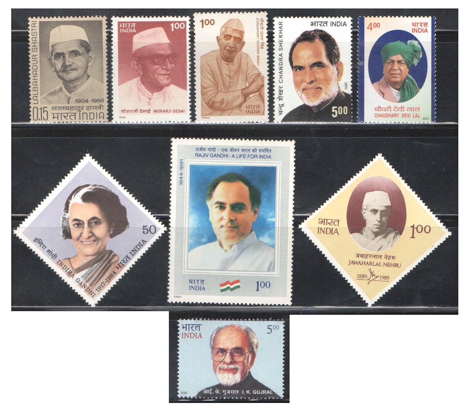India 1966-2020 Prime Ministers of India – Set of 9 Postage Stamps MNH