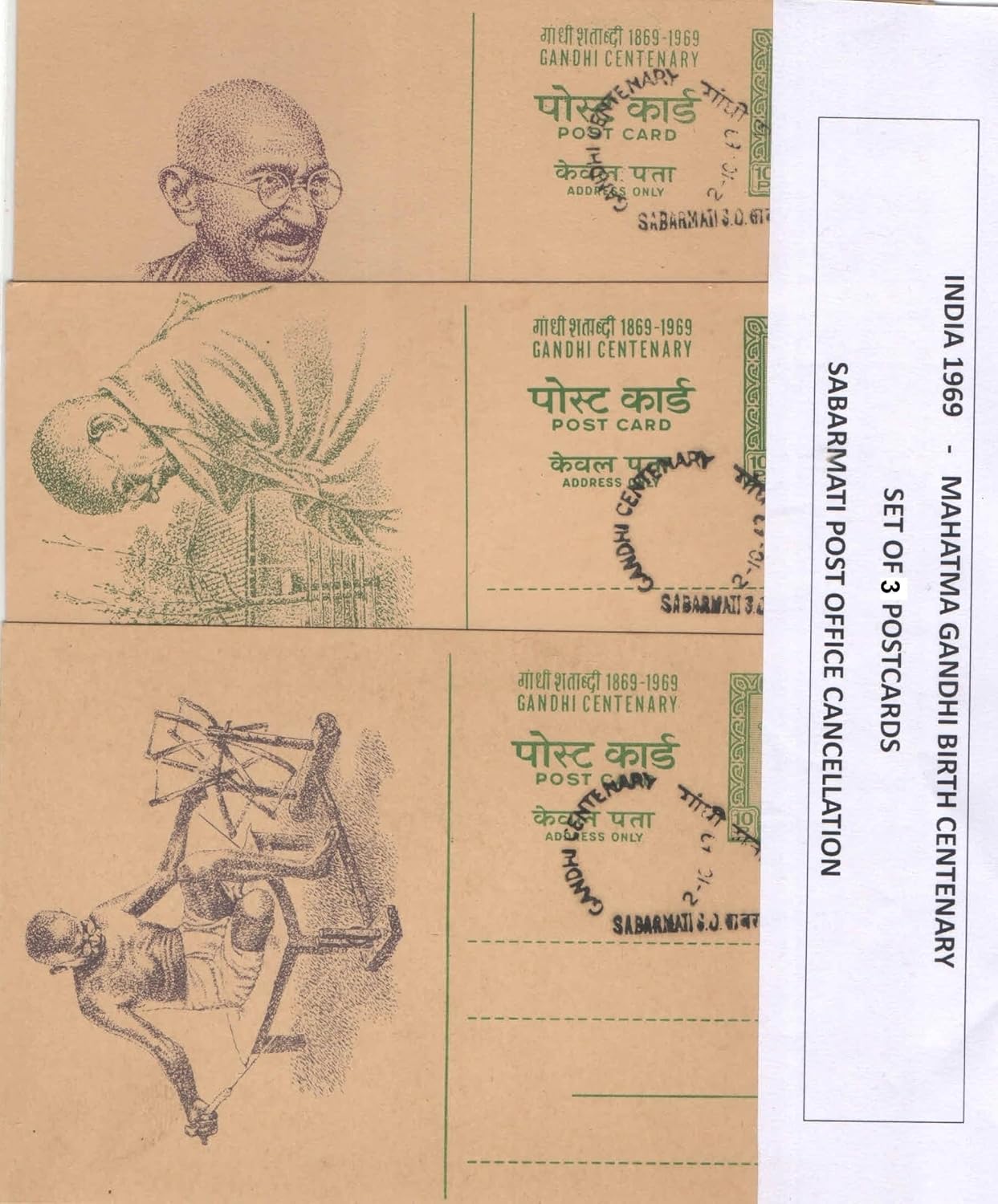 India 1969 Birth Centenary of Mahatma Gandhi – Set of 3 PCs (Sabarmati P.O. Cancellation) Multicolor