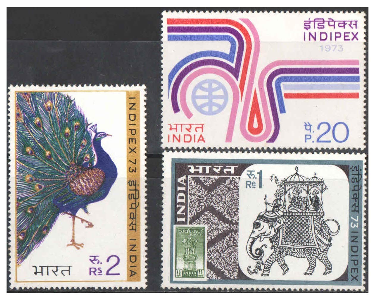 India 1973 Postage Stamp – INDIPEX 73 ( India International Philatelic Exhibition New Delhi ) Set of 3 Stamps Mint Unhinged