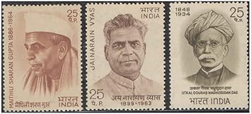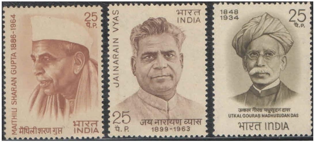 India 1974 Personalities Series (Maithili Sharan Gupta – Jainarayan Vyas – Utkal Gourab Madhusudan Das) – Set of 3 Postage Stamps Mint Unhinged