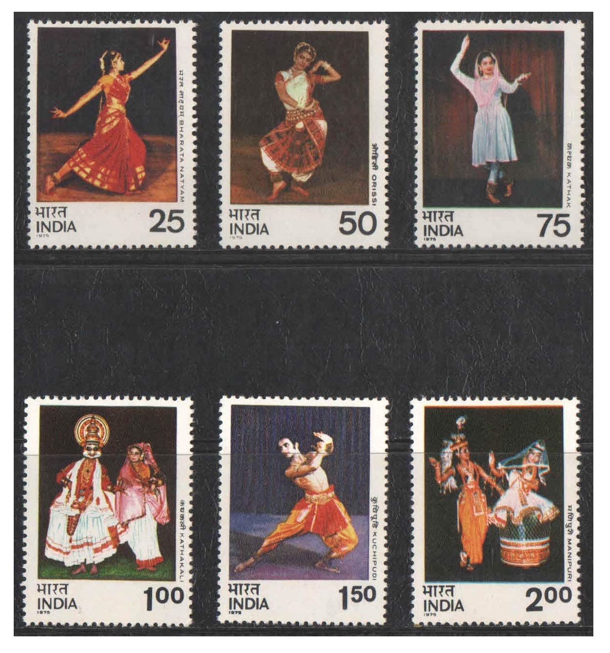 India 1975 Indian Classical Dances Set of 6 Stamps ( Bharata Natyam – Odissi – Kathak – Kathakali – Kuchipudi – Manipuri ) Mint Unhinged