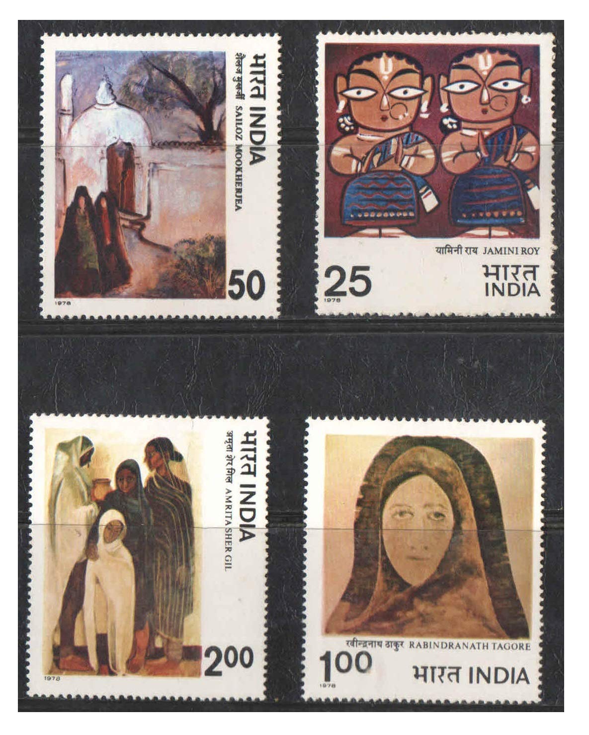 India 1978 Postage Stamp – Modern Indian Paintings ( Jamini Roy – Sailoz Mookherjea – Rabindranath Tagore – Amrita Shergill ) Set of 4 Stamps Mint Unhinged