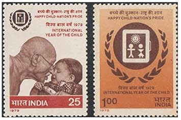 India 1979 International Year of The Child ( Gandhi with a Child – Indian IYC Emblem ) Set of 2 Stamps Mint Unhinged