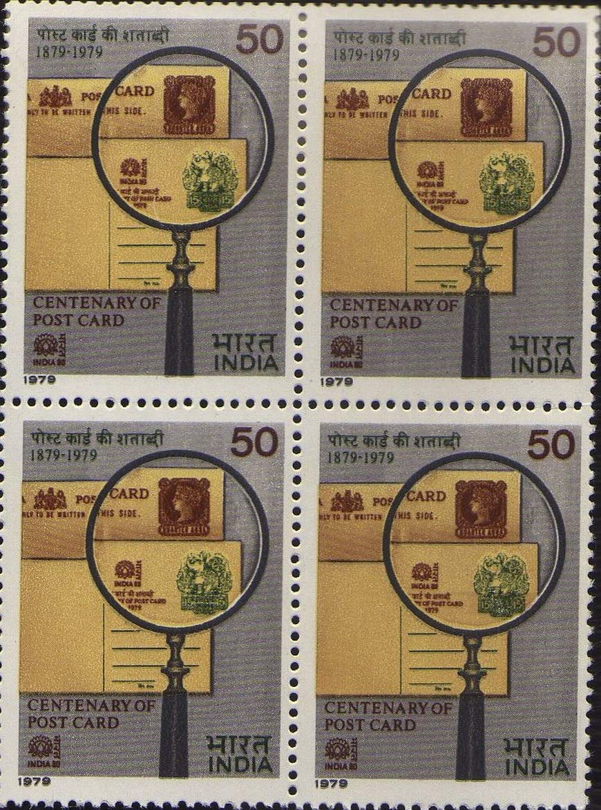 India 1979 Postage Stamp – Centenary of Post Card – Block of 4 Stamps Mint Non HINGED