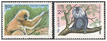 India 1983 Indian Wildlife Endangered Primates (Golden Langur – Presbytis geei – Lion Tailed Macaque – Macaca ilenus) Set of 2 Stamps Mint Unhinged