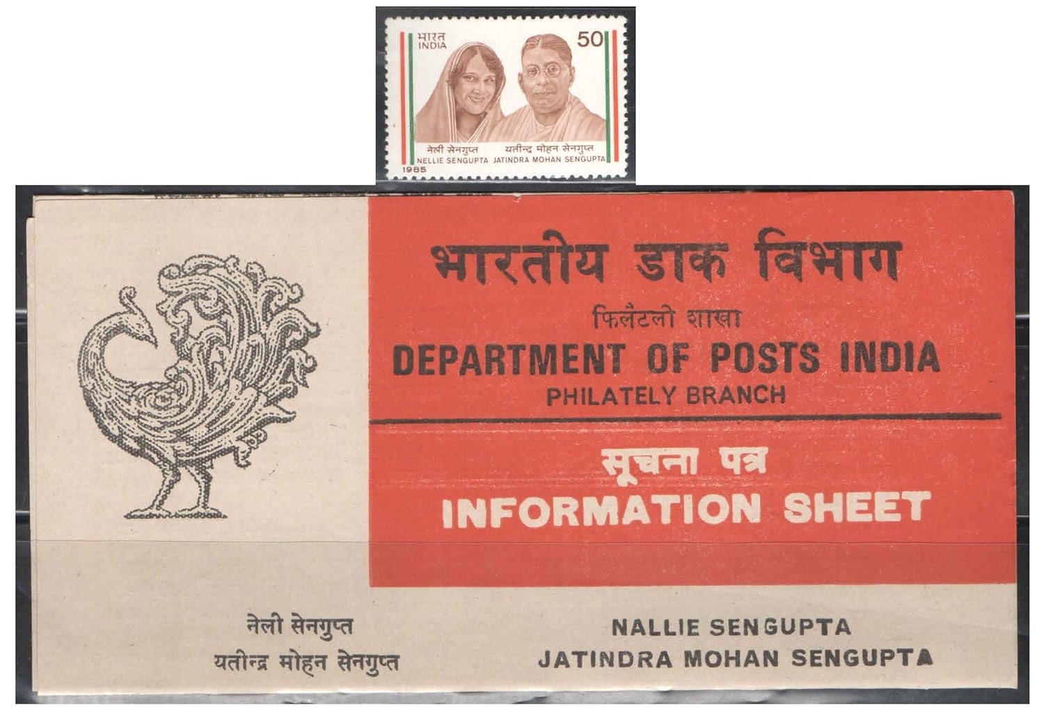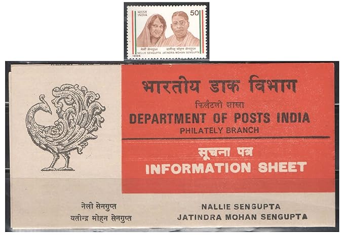 India 1985 – Error Set of Stamp + Brochure – Nellie & Jatindra Mohan Sengupta (Name Printed as NALLIE in brochure) – (Set of Stamp & Brocure) Multicolor
