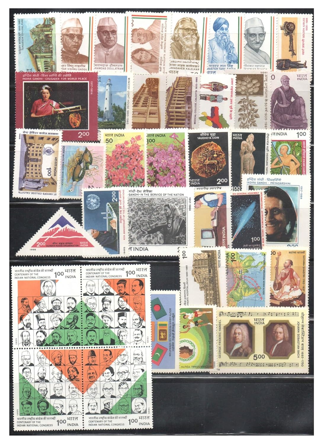 India 1985 Year Pack (Full Complete Year Pack – Year Set) of 38 Postage Stamps Mint Unhinged