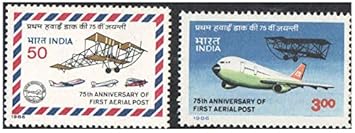 India 1986 75th Anniversary of First Aerial Post Air Mail Flight ( Airmail Flight ) Set of 2 Postage Stamps Mint Unhinged