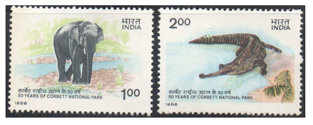 India 1986 Jim Corbett National Park Golden Jubilee – Set of 2 Stamps MNH