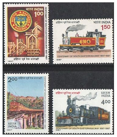 India 1987 Centenary of South Eastern Railway ( S.E. Railway Insigia – PL Type Narrow Gauge Locomotive – Electric Locomotive – ZE Type Narrow Gauge Locomotive ) Set of 4 Stamps Mint Unhinged