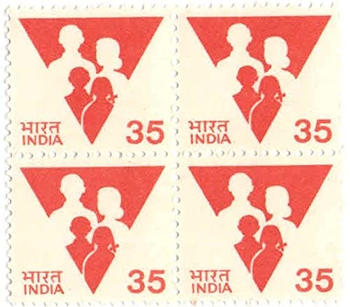 India 1987 Family Planning 35 P 7TH Definitive Block of 4 Stamps Mint Non HINGED