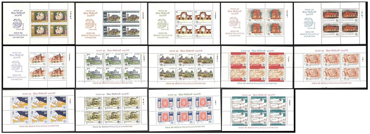 India 1987 to 1989 – India 89 – World Philatelic Exhibition – Complete Set of 14 Panes containing 72 Postage Stamps – Mint, Never Hinged, for Collection