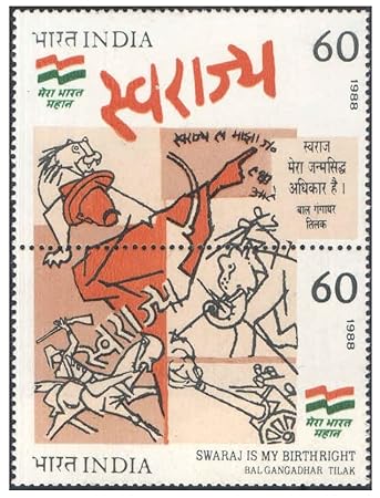 India 1988 Swarajya Se-Tenant of 2 Postage Stamps Mint Unhinged
