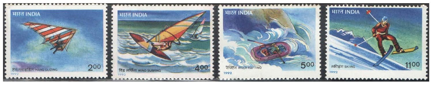 India 1992 Adventure Sports (Set of 4 Stamps) Hang Gliding – Wind Surfing – River Rafting – Skiing Mint Unhinged