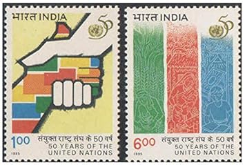 India 1995 50 Years of The United Nations ( Handshake – Work On UN Agencies ) Set of 2 Stamps Mint Unhinged