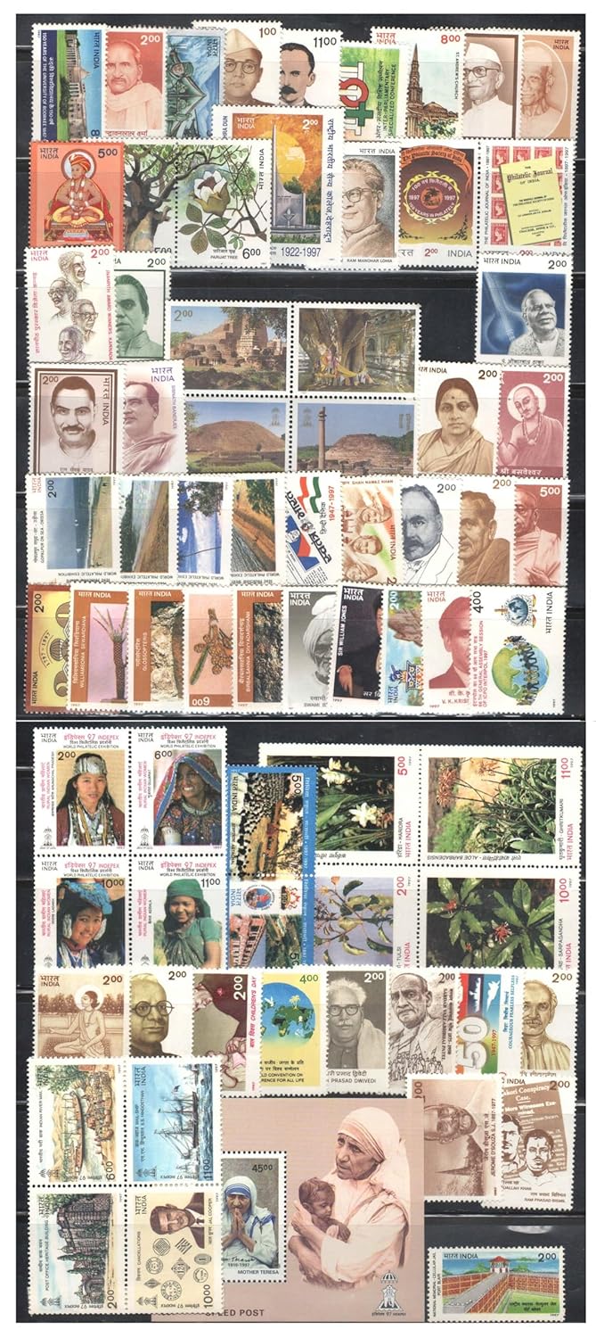 India 1997 Year Pack (Full Complete Set) of 72 Postage Stamps (Including Mother Teresa Miniature Sheet) – Mint, Never Hinged, for Collection