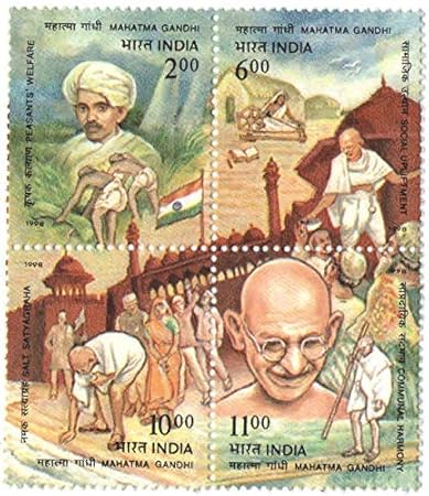 India 1998 Mahatma Gandhi 50 th Death AnniversarySe-Tenant Block of 4 Stamps Mint Unhinged