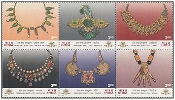 India 2000 Gems & Jewellery – Se-Tenant Block of 6 Postage Stamps Mint Unhinged