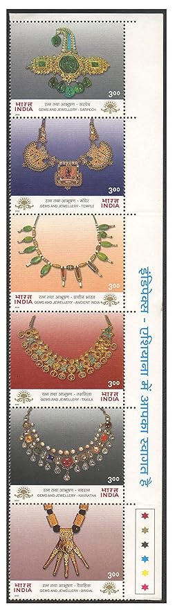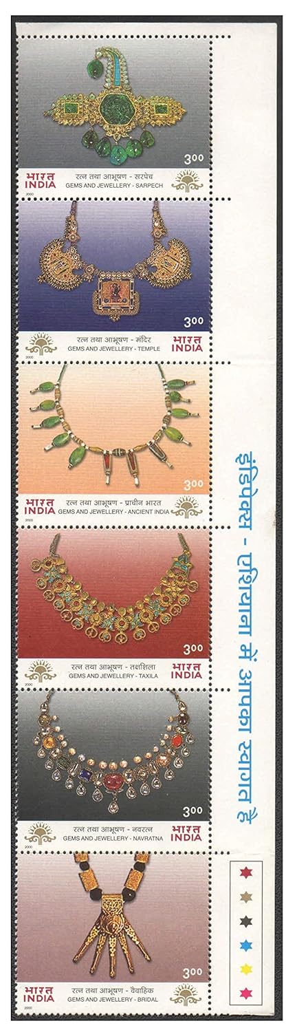 India 2000 Gems & Jewellery – Vertical Se-Tenant Strip of 6 Postage Stamps ( Single Folded ) with TL Mint Unhinged