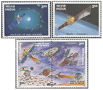 India 2000 India in Space – Oceansat-1 – INSAT 3B in Oribt & Satellites ( Set of 2 Stamps + One Se-Tenant Pair ) Total 4 Postage Stamps Mint Unhinged