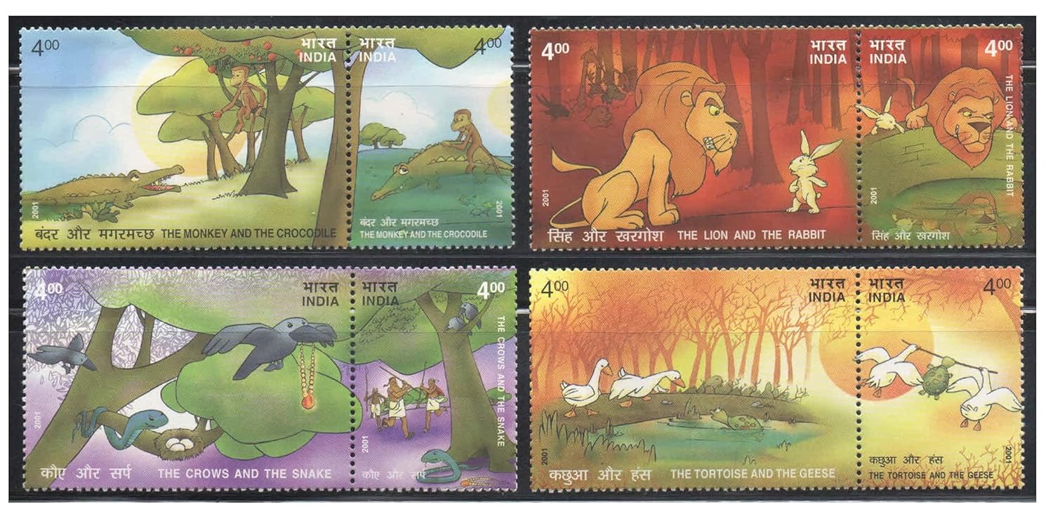 India 2001 Stories from Panchatantra – Set of Four Se-Tenant Pairs of Stamps (Total 8 Stamps) Mint Unhinged